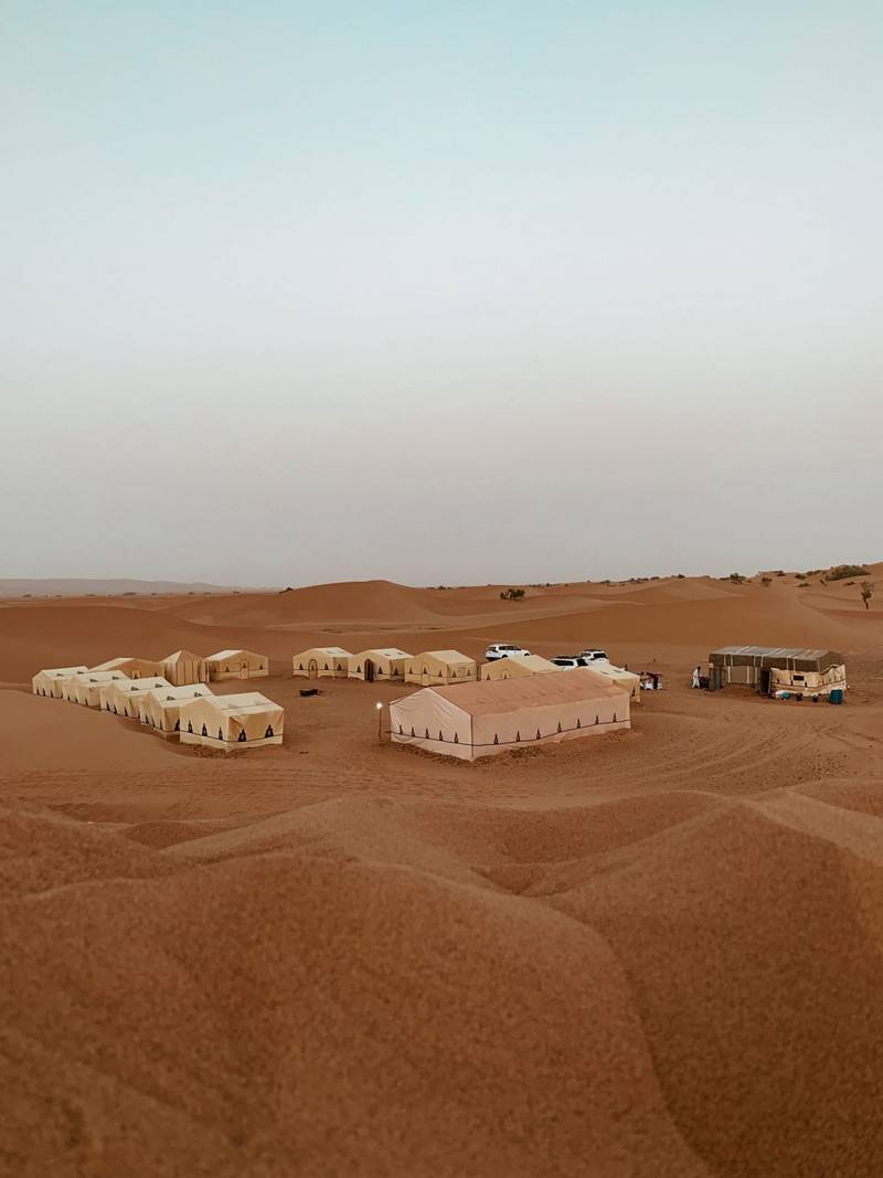 Departure to Zagora desert , on arrival you will change vehicles against camels for a ride in the desert. In the evening, you will admire an exceptional sunset and return to the luxury bivouac for a traditional dinner around the campfire and a night in a nomad tent in the Sahara.